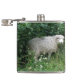 Cette énorme flacon comporte une photo d'un mignon mouton moelleux. Le mouton est entouré de fleurs sauvages et d'herbe longue et mange quelques feuilles. Il a une épaisse couche blanche de laine et un mignon nez noir.