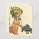 Cliquez sur le bouton "personnaliser" pour accéder aux outils de conception et ajouter votre propre texte personnalisé ! De nombreux styles de polices à choisir ! Illustration vintage image enfants et bébés avec une jeune fille blonde mignonne avec queue de poney parlant sur son premier téléphone. Appelez tous vos amis et dites-leur la bonne nouvelle !