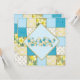 Cute Blue Baby Quilt Baby shower invitation - en bleu pour l'attente du bébé garçon - fantaisie et adorable dans un style moderne frais mais encore vintage avec coeurs, pois, étoiles, rayures et jonquilles