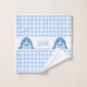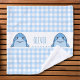 Ce linge de toilette personnalisé comprend un motif en vichy et deux petits requins bleus joyeux aux visages souriants.