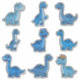 Explore a gentle prehistoric world with this charming set of custom-cut vinyl stickers! This collection features nine super cute illustrations of baby Brontosaurus (long-neck) dinosaurs in various standing and grazing poses, all rendered in a lovely blue hue. The soft, friendly style makes these tiny, long-necked creatures perfectly appealing for younger children and any little paleontologist.