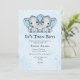 Baby shower in honour of a mum-to-be of twins. Featuring a pair of cute, baby blue elephants announcing that twin boys are on their way. Time to celebrate the good news.