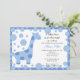 Adorable invitation de Baby shower garçon avec une girafe bleu clair avec un arrière - plan en pois bleu pois. Objets correspondants disponibles dans notre boutique. Idéal pour un baby shower safari, jungle ou girafe.