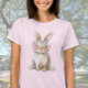 Cute bunny on flowers. A love inscription in the back with pink bow.