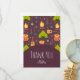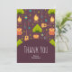 Un carte de remerciements plat avec un motif amusant à thème camping. Placer sur un arrière - plan brun rougeâtre. Les éléments du motif comprennent un feu de camp, une tente, une guitare, une pelle et un sac à dos. Personnalisez un nom à l'avant et un message à l'arrière.