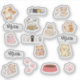 Cute and kawaii cat sticker sheet with adorable kitty illustrations, meow text stickers, paw prints and cozy cat vibes, perfect for laptop stickers, notebooks, planners, journals, water bottles and study decor, aesthetic pastel cat stickers for cat lovers and pet lovers