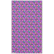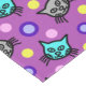 Une nappe de 60 po x 104 po avec un design motif mignon et coloré de chats gris et turquoises contre un arrière - plan violet violet aux accents de pois multicolores.