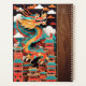 Cute Dragon (découpe de papier et style origami) dans des maisons chinoises traditionnelles avec papier arrière - plan rouge (image imprimée - modèle n°2) + Année du Dragon + idéogramme Fu (pour la chance) et Monogramme pour customiser en "bois" (image imprimée) en arrière - plan. Conception sur grand planificateur. Parfait pour le Nouvel An chinois du Dragon ou anniversaire (personnes nées dans l'année du Dragon).