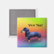Un dachshund noir se dresse dans les couleurs vives en attendant son ami.