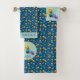 Ce somptueux ensemble de tour de bain est absolument magnifique ! Il dispose d'un motif de mignonnes figurines de dinosaures 3d sur arrière - plan bleu, parfait pour les enfants qui aiment les dinos. Il vient avec la possibilité d'ajouter un nom et Initial.
