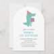 Cette invitation mignonne est idéale pour un garçon 1er anniversaire mais peut être adapté pour toute occasion. Dessine un dinosaure de dessin animé portant un casquette de fête et tenant un cadeau d'anniversaire. La typographie simple et élégante est facile à customiser pour n'importe quel âge avec tous les détails de votre fête.