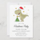 Cette drôle d'invitation à la fête de Noël présente une illustration de dessin du mignon dinosaure portant un chapeau de Père Noël et décorant l'arbre de Noël. Conçu dans les couleurs traditionnelles de Noël : vert, rouge, jaune. Vous pouvez facilement customiser le texte dans la partie inférieure de la carte avec l'outil de personnalisation Zazzle. Le dos de l'Invitation est décoré d'étoiles dorées.