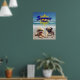 This poster radiates warmth, fun, and the simple happiness of dogs at the beach.