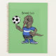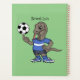 Ce dragon de Komodo heureux joue au football ! Dessiné dans un style de dessin animé amusant.
