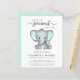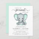 Une invitation à baby shower pour couple, mignonne, économique et neutre pour le genre, avec "A Sweet Little Peanut Is On Her Way" (vous pouvez changer à "son" ou "Son"), écrite dans un mélange de typographie moderne gris doux et de script élégant, et d'une aquarelle verte à la menthe pastel d'un bébé éléphant. Personnalisez le nom du parent et les détails de la douche dans une simple typographie grise.