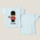 Ce t-shirt bébé tout-en-un comporte un petit ours en peluche souriant vêtu d'une garde royale avec un grand casquette noir et une veste rouge, tenant un petit drapeau britannique.