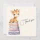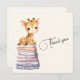 Ce carte de remerciements de girafe est le moyen idéal d'express votre gratitude à vos amis et aux membres de votre famille qui vous ont offert des cadeaux et de l'amour pendant votre baby shower ou après l'arrivée de votre petit paquet de joie. Le design se compose d'une adorable girafe au sourire doux, posée sur un tas de serviettes moelleuses. Le format de carte à plat vous offre suffisamment d'espace pour écrire votre message de remerciement personnel. Que vous envoyiez des cartes de remerciement après un baby shower ou que vous exprimiez simplement votre reconnaissance pour l'amour et le soutien de vos proches, ce carte de remerciements bébé girafe sera certainement un succès.