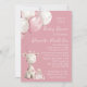 Celebrate the arrival of a little lady with this elegant and whimsical baby shower invitation! It features a graceful giraffe in a delicate French Toile de Jouy style holding soft pink balloons and a sweet teddy bear peeking out from a gift box. The vintage-inspired pattern adds a touch of timeless charm, while the playful characters bring warmth and joy to your celebration. Perfect for tea parties, garden gatherings, or any shower with a classic-meets-cute theme.