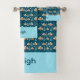 Very cute, cartoon goldfish swim around blue-green aquatic plants on a dark, ocean blue backgound. Personalize with your name in a wide, aqua band at the bottom. Would be very cute and fun for a child.