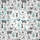 Cute Grey et Turquoise Woodland Animaux Tissu