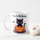 Sirotez votre boisson d'automne préférée avec cette tasse d'Halloween pure et mignonne ! Le design se compose d'un adorable chaton noir avec de grands yeux oranges et des joues roses qui se jettent d'un regard luisant sur une lanterne jack-o’. Autour du chaton se trouvent de petits citrouilles, des points flottants violets et oranges, une chauve-souris volante et des étoiles orange étincelantes qui créent une atmosphère joyeuse d'Halloween. Parfait pour le café, le thé ou le cacao chaud, cette tasse fait un cadeau amusant et confortable pour les amoureux de les chats et les amateurs d'Halloween.