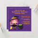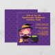 Cet adorable invitation du costume d'Halloween 5.25x5.25 a une petite sorcière tenant un balai debout à côté d'un chaudron en bas à gauche. Vous pouvez facilement customiser les informations de votre parti en haut et en bas à droite. designs de Zenware Designs