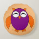 Ce magnifique coussin rond présente une chouette mignonne avec les yeux fermés comme s'il dormait et des griffes mignonnes. Son corps est violet et ses ailes, oreilles, griffes et bec sont oranges. Cette chouette est tellement adorable que les adultes l'adoreront autant que les enfants.