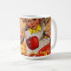 Joyeux Halloween ! Ne laissez pas votre dent douce s'échapper de vous ! Cette mignonne tasse à café Halloween à l'ancienne est idéale pour déguster du cidre de pomme. Et il présente une drôle de peinture d'un garçon perdant sa dent pendant qu'il frotte des pommes à la fête costumée d'Halloween. Message personnalisable