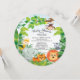 Baby shower safari rond super mignon invitation pour un baby shower pour filles, baby shower pour garçons ou baby shower neutre pour le genre. Notre invitation de jungle de petits animaux douces présente un mignon singe suspendu, girafe, éléphant, tigre, lion & zèbre posé sur un arrière - plan bleu ciel ombragé avec un cadre feuille de jungle. Un ajout merveilleux à votre thème jungle ou safari baby shower à thème animal. Retournez notre invitation safari contemporain et élégant pour voir un retour assorti pour une touche spéciale supplémentaire.