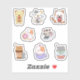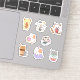 Design chat mignon mangeant des autocollants de kawaii maison sur le thème de la restauration rapide avec des illustrations adorables, des couleurs pastel, et des éléments de maison douillets. Parfait pour ajouter du charme à votre décor maison.
