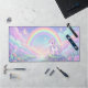Transform your entire workspace into a wonderland! This extra-large desk mat provides a smooth surface for your mouse and keyboard while showcasing a stunning panoramic view of our pastel unicorn world. It protects your desk from scratches and spills and adds a massive dose of cuteness to your gaming or study setup
