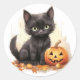 Cute chaton noir avec un autocollant citrouille pour aider à sceller vos enveloppes d'invitation ou sceller vos sacs de faveur.