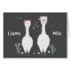 Voici une carte de la Saint Valentin mignonne qui a un sentiment agréable pour votre amour, aussi. Sur le devant, deux lamas blanches sur un arrière - plan noir. Autour des lamas sont des coeurs roses et des cactus. Le texte blanc dit LAMA MIA. L'intérieur de la carte continue le sentiment dans un coeur rouge stylistique. Tout le texte peut être facilement customisé.