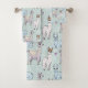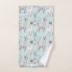 Serviette avec un motif mignon avec lamas géantes. L'un est allongé, l'autre tient une fleur dans la bouche, et l'autre vous regarde de manière suspecte. Ces animaux ont beaucoup de charme. Placez-vous sur un arrière - plan à pois vert.