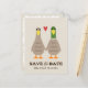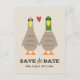 De mignons canards colverts se tenant la main. Un plaisir à sauver la date annonce pour le prochain être M. et Mme Personnalisez cette carte postale mariage drôle avec le nom du couple heureux et la date mariage. Visitez le Doodle World de Jenn pour plus de produits de planification mariages avec ce design canard et des invitations de mariage plus originales sur le thème animal.
