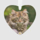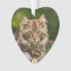 Un jeune chaton brun, maine Coon, assis curieusement dans un pré fleuri au printemps. Photo d'un chaton coonie de Katho Menden. Cet ornement en acrylique de Noël en forme de coeur est une idée cadeau pour les amoureux de les chats.
