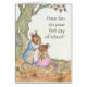 Une carte de voeux "Amusez-vous le premier jour de l'école", avec une petite souris quittant le Cottage Mousehole pour partir pour sa première journée à l'école. Ce dessin est tiré d'une illustration d'aquarelle peinte à la main par Judy Adamson. Vous pouvez personnaliser le message interne.