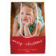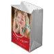 Sacs cadeaux de Noël Joyeux, blanc et rouge personnalisés, avec photo et texte personnalisables - vous pouvez ajouter votre photo, votre nom de famille et votre année. Photographie © Storytree Studios, Stanford, CA