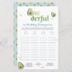 Célébrez le premier voyage de votre petit avec notre adorable "Cute Onederful Avocado 1st Birthday Game Cards"! Dotées de charmantes créations sur le thème de l'avocat, ces cartes sont imprimées sur des cartons robustes, elles sont assez durables pour résister même aux petits joueurs les plus enthousiastes. Ajoutez une touche de fantaisie à votre fête avec ces cartes de jeu délicieuses !