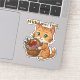 Cute Orange Cat & Spring Flowers: Die-Cut Sticker