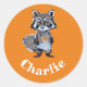 Cute Orange Raccoon Doodle Art Nom Étiquette