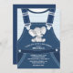 Baby shower d'éléphant mignon Invitation mettant en vedette la paire la plus mignonne de salopettes de bébé avec un éléphant en niveaux de gris. Unique Boys invitation baby shower pour un thème de baby shower safari de garçons dans la jungle.