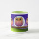 Cette tasse colorée a un design d'illustration vectorielle avec des chouettes adorables et décoratives sur une longue branche dans une nuit étoilée pleine lune. Ce produit peut être customisé en ajoutant du texte.