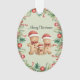 Une jolie famille de biscuits en pain d'épice - père, mère et enfant - portant des chapeaux de Père Noël rouges et blancs entourés de saints rouges et verts et de baies et à feuillage persistant frontière de Noël.