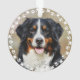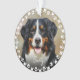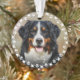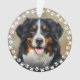 Cute custom pet ornament for dog or cat lovers. This design features a photo and name of your furry friend on the front and back with a cute and modern circle round frame of paw prints and hearts. This will be perfect as personalized gift.