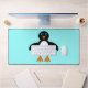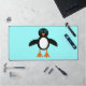 Ce somptueux tapis de bureau est doté d'un joli manchot avec un ventre blanc, de grands yeux bleus avec des élèves noirs et de mignons pieds et bec orange. Ce charmant petit oiseau d'hiver ravira petits et grands. Le pingouin est assis sur un arrière - plan bleu pâle glacé pour lui rappeler sa maison arctique froide.