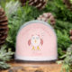 This awesome First Christmas snow globe features a cute cartoon of a pink owl with sleepy eyes, a wide open beak and cute fluffy feathers. The owl is holding a bubblegum pink balloon. There is pretty pink text inside the balloon that says, “Baby Girl”. This is the perfect gift for celebrating a baby girl. There is custom text so you can personalize this design with the name of the baby and the year.