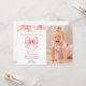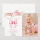 Cute Pink Bow Girl First Birthday Photo Invitation