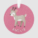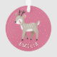 Cute Pink Reindeer Kid`s Name Christmas Ceramic Ornament. Cute deer on a pink background with white snowflakes. The ornament has a name template - personalize it with your name.