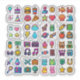Inspired by classic 8-bit video games, this colorful sticker set features cute icons including burgers, donuts, rockets, aliens, animals, school supplies, music, magic items, and more. Each design has a bright palette and nostalgic arcade-style pixel look that makes it perfect for gamers and lovers of kawaii art.